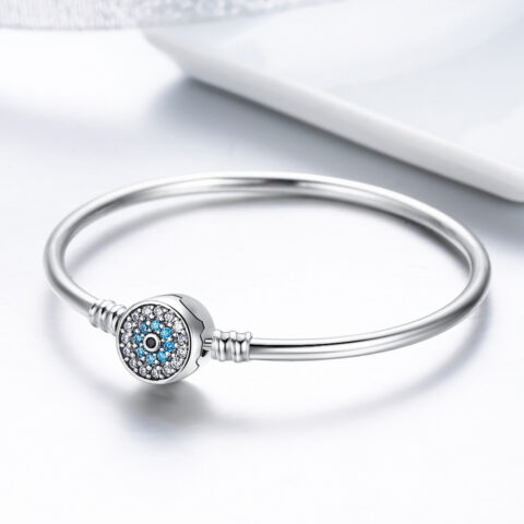 Sterling Silver Evil Eye Clasp Bangle