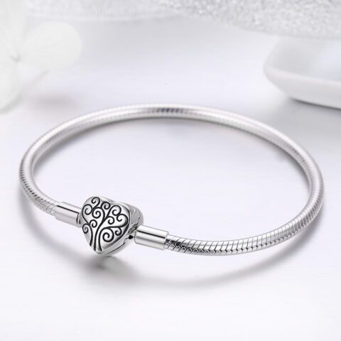 Sterling Silver Heart Charm Clasp Bangle