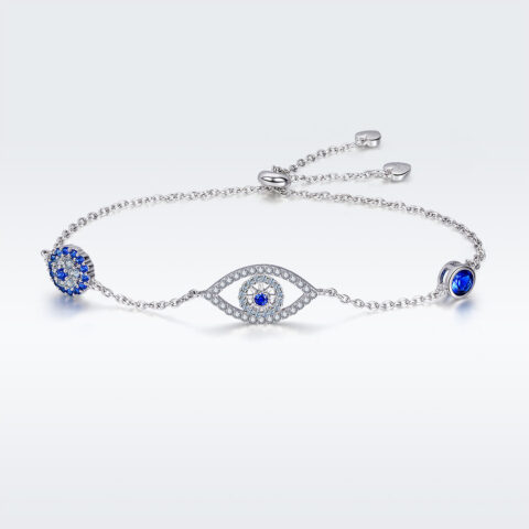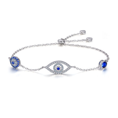 Sterling Silver Adjustable Evil Eye Bracelet with Blue Gemstone