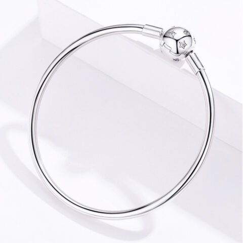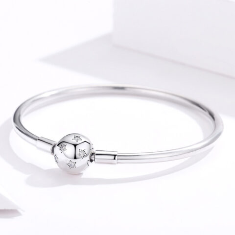 Sterling Silver Clasp Bangle with Star CZ Ball Charm