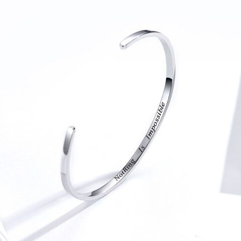 Sterling Silver Flat Open Bangle – “Nothing Is Impossible”
