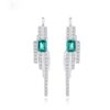 Striking and sophisticated, these drop earrings showcase a vibrant emerald-cut ocean blue stone suspended beneath a sparkling pavé-set stud. The polished silver-tone setting enhances their brilliance, creating a bold yet elegant look.