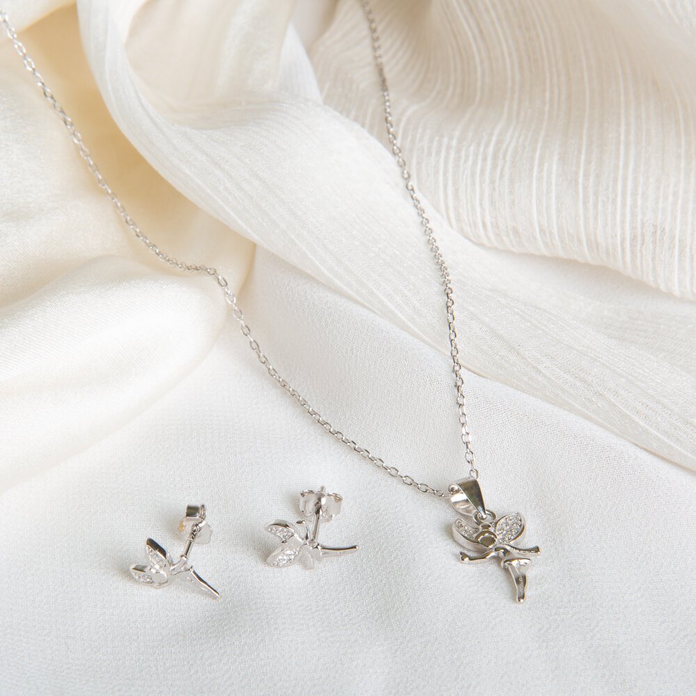 s925 Silver Angel Pendant With Matching Earring And Including s925 Chain