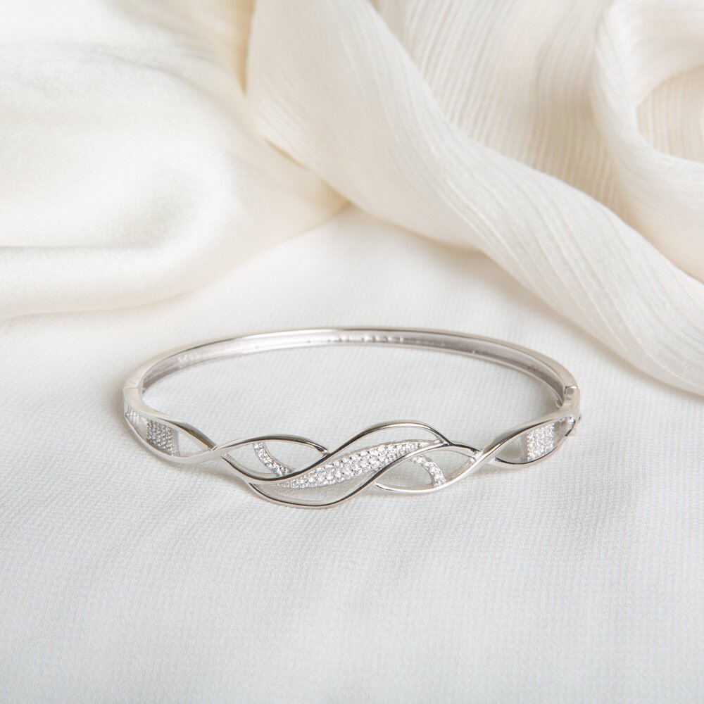 Sparkling CZ Silver Bangle