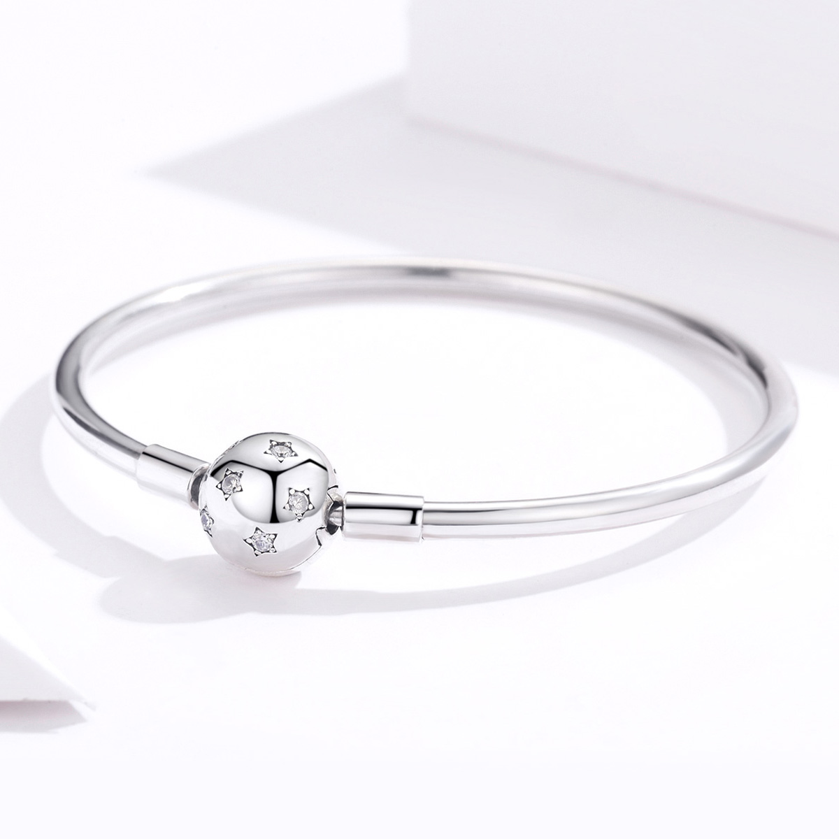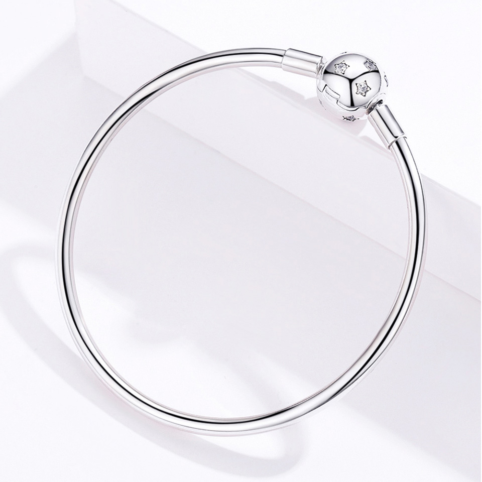 Sterling Silver Clasp Bangle with sparkling Star CZ Ball charm. Polished, versatile, and perfect for layering or gifting.