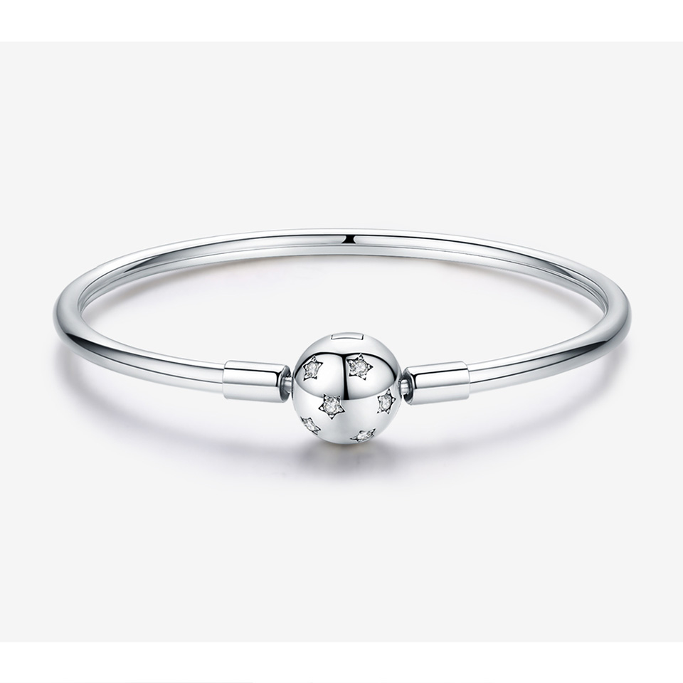 Sterling Silver Clasp Bangle with Star CZ Ball Charm
